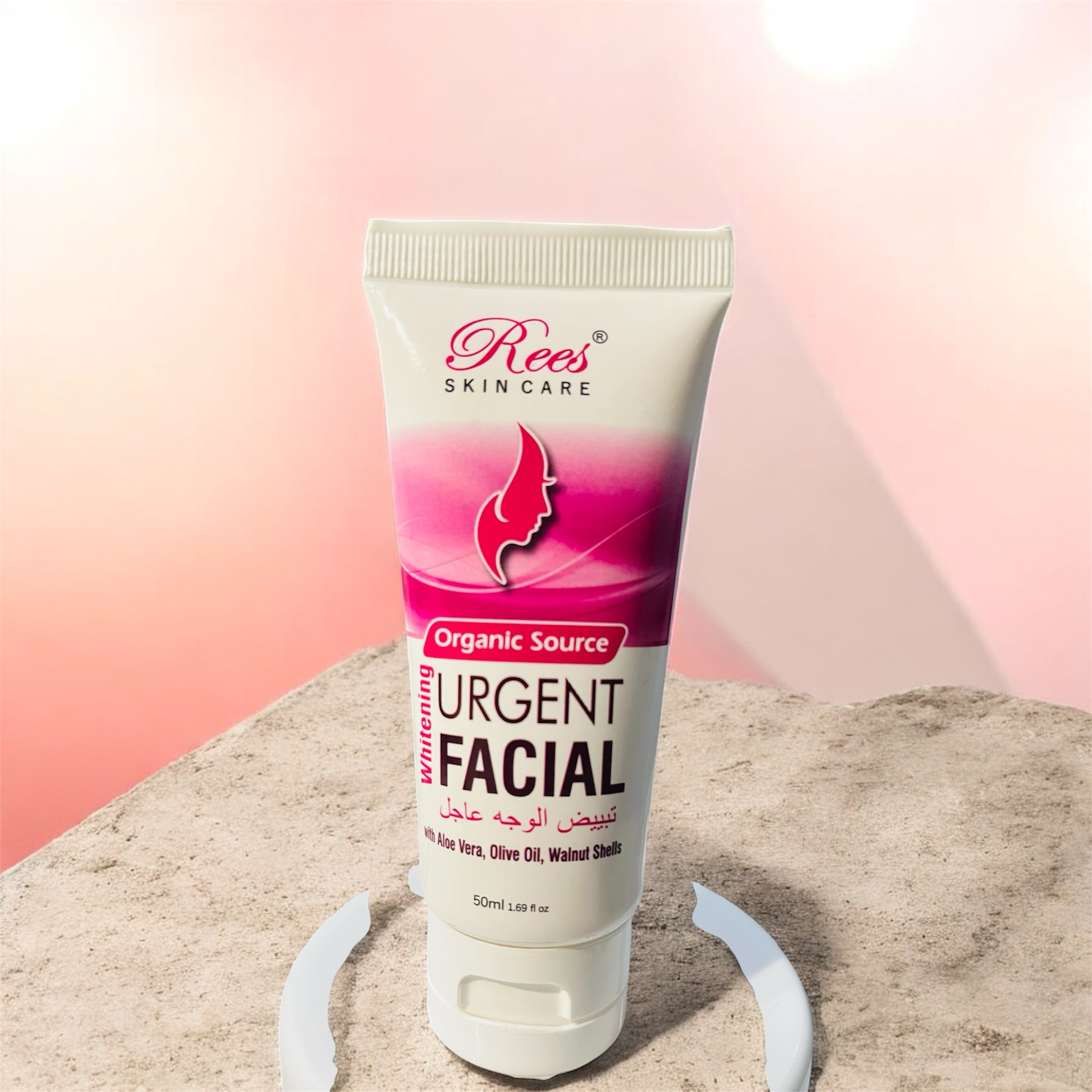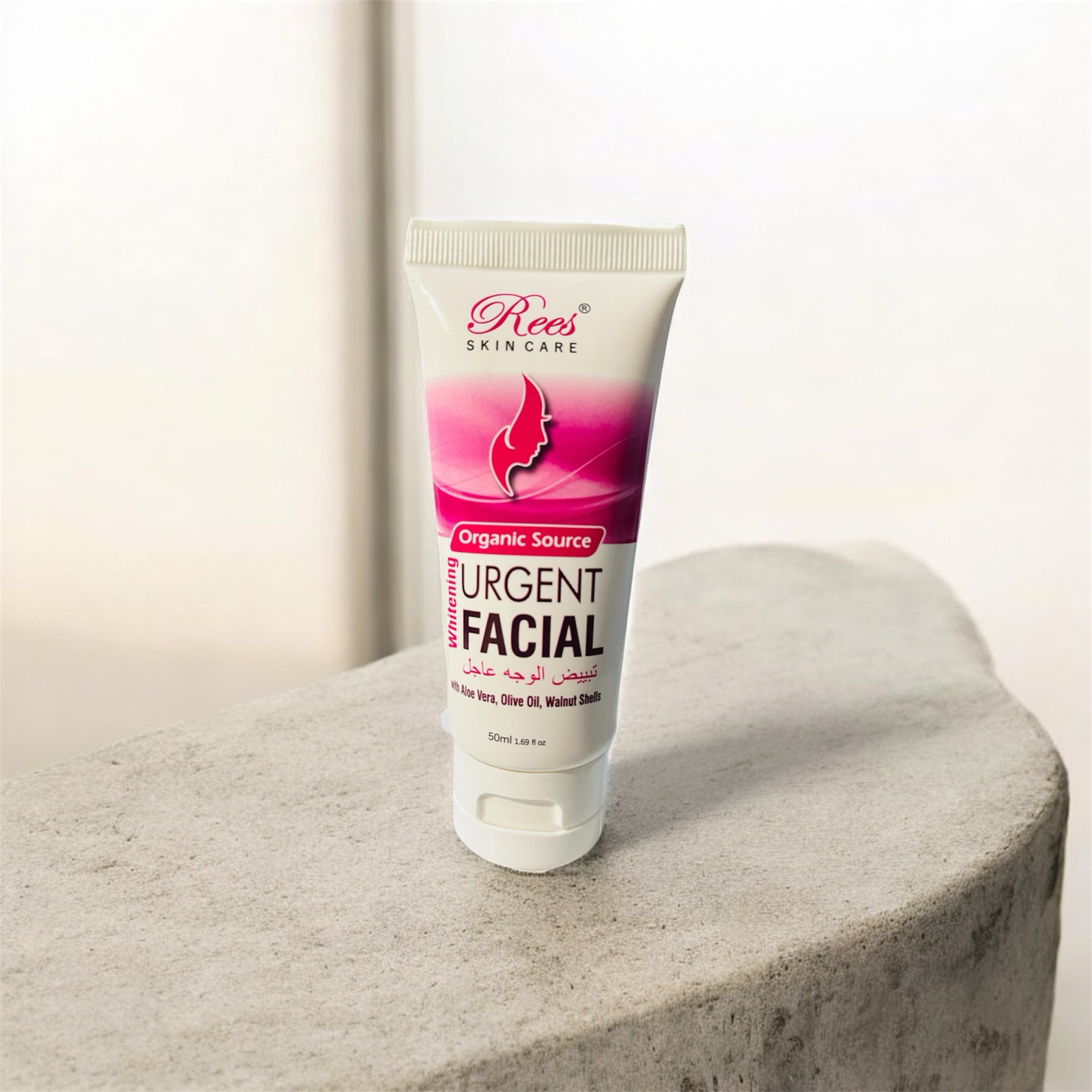 Urgent facial” is a common name for at-home, all-in-one facial treatments designed to provide quick results, often in as little as 10-15 minutes. These products typically combine cleansing, exfoliating, and brightening steps to revitalize skin quickly, making them ideal for use before special events.